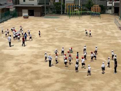6月20日(火)2時間目、1年は体育で「なかあて」をしていました。