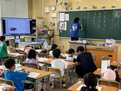 6月20日(火)3時間目、1年2組は国語で「どう やって みを まもるのかな」を学習していました。