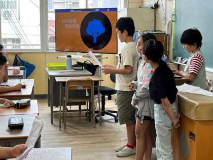 6月22日(木)6時間目、5年1組は国語で班ごとに調べた環境問題について発表していました。トップバッターの班は「森林破壊」について発表していました。