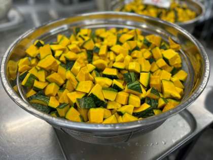 給食の「和なし(カット缶)」は、幸水・豊水・二十世紀などの「日本なし」を使用しています。食べやすい大きさに切ってシロップ漬けの缶づめにしています。