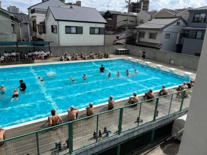 6月22日(木)6時間目、6年はプール開きでふしうき等泳ぎの基本を徹底していました。