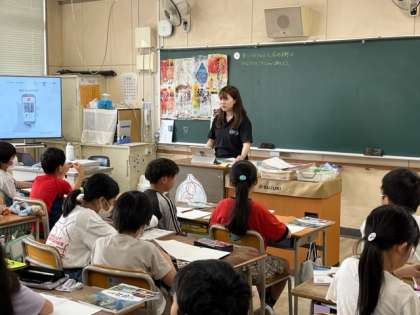 6月23日(金)1時間目、5年2組は社会科で米づくりの盛んな庄内平野はどのようなところか調べていました。黒板には子どもたちが家庭て食べているお米の袋が掲示されていました。