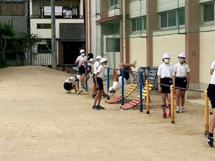 6月23日(金)1時間目、6年2組は体育で鉄棒をしていました。