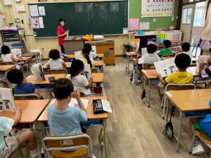 6月26日(月)3時間目、1年2組は国語で「どうやって みを まもるのかな」の音読をしていました。