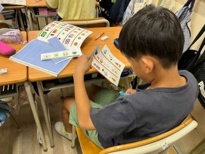 6月27日(火)1時間目、5年2組は外国語科で絵カードを作っていました。