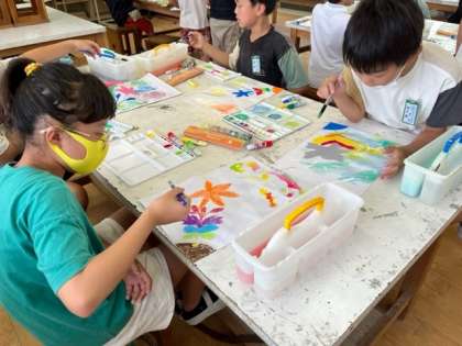 6月30日(金)3時間目、4年2組は図工で絵をかいていました。
