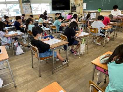 7月4日(火)1時間目、3年2組は社会科でテストをしていました。