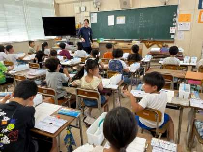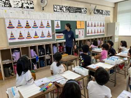 7月4日(火)1時間目、2年2組は図工で絵の具の塗り方を学習していました。今日は「こい、うすい」を意識して塗るようです。