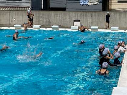 7月4日(火)1時間目、6年生はプール水泳でコースに分かれて、どんどん練習していました。