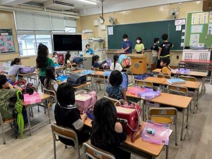 7月5日(水)5時間目、地区会で班ごとに夏休みの過ごし方等を話し合いました。その後集団下校をしました。