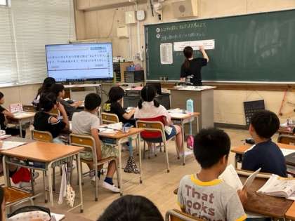 7月6日(木)3時間目、4年1組は算数でおよその数にする方法を考えていました。