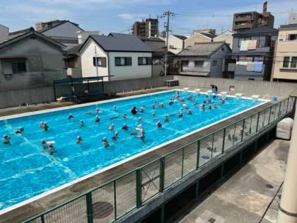7月7日(金)2時間目、2年はプール水泳でした。水遊びを楽しんでいました。