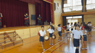 今日は、11月に行う劇鑑賞にむけて、当日劇に出演する5年生が事前のワークショップに参加しました。沖縄の踊り「エイサー」を劇団の方に教えていただきました。5年生は、運動会でも「エイサー」を踊る予定にしていますので、一生懸命話を聞いて覚えようと頑張っていました。