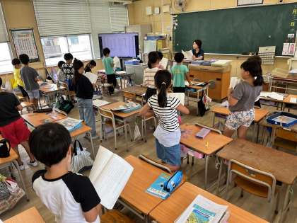 7月13日(木)1時間目、3年1組は国語で「朝ごはんをしっかり食べよう」を音読していました。