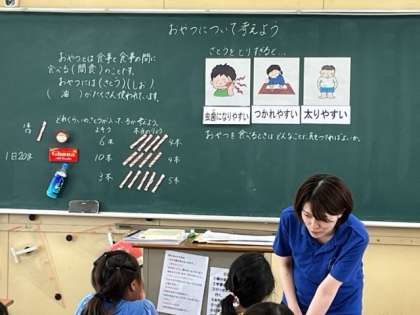7月13日(木)3時間目、3年2組は栄養指導でおやつについて考えていました。おやつを食べるときに気をつけることがわかったでしょうか?