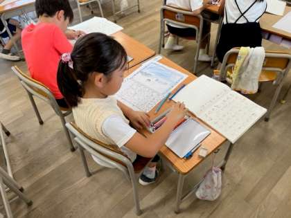 7月18日(火)1時間目、1年1組は国語で絵日記を書いていました。
