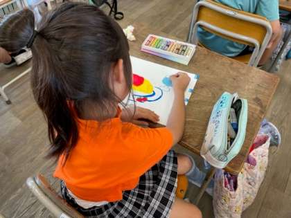 7月18日(火)1時間目、3年2組は図工で「全国児童絵画コンクール」の絵を描いていました。