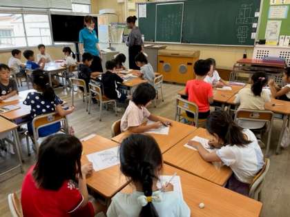 7月18日(火)2時間目、1年1組は外国語活動で動物の名前を英語で言う練習をしていました。