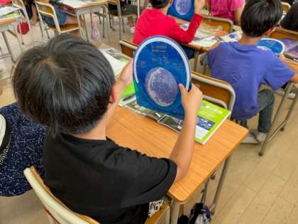 7月18日(火)5時間目、4年2組は理科で「夏の夜空」について学習していました。星の明るさを学習した後、星座早見盤を使って星や星座の見つけ方を学習していました。