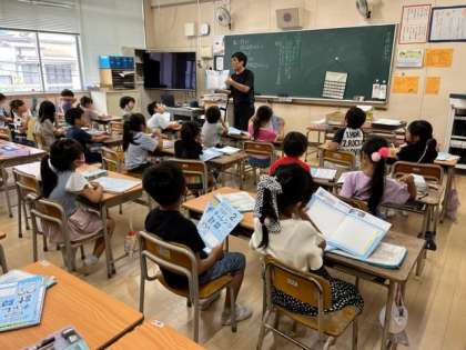 7月19日(水)1時間目、2年1組は学級活動で、夏休みの過ごし方について確認をしていました。