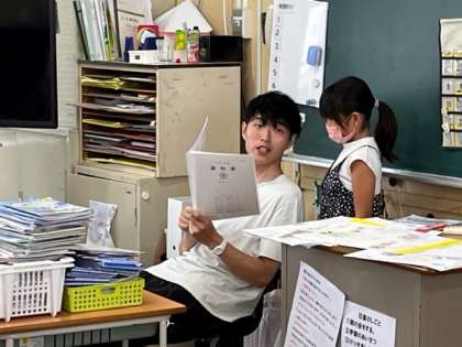 7月19日(水)1時間目、3年2組は学級活動で一人ずつ通知表をもらっていました。先生からがんばったところやこれからがんばることの話を聞いているようでした。
