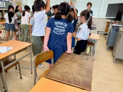 7月19日(水)3時間目、4年1組は班ごとにゲームをして楽しんでいました。