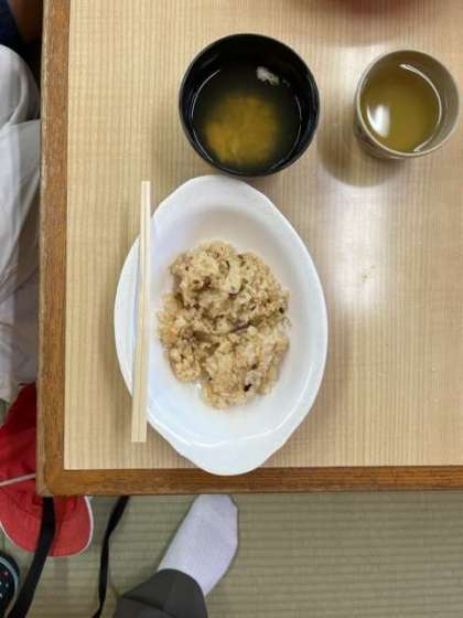 ?昼食は炊き込みご飯です。ハチ高原最後の食事です。