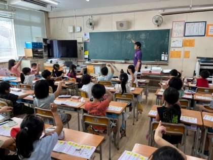 8月29日(火)1時間目、2年1組は国語で初めに新出漢字の学習をしていました。