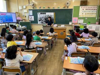 8月29日(火)1時間目、1年2組は算数で数のかぞえかたを学習していました。2ずつ、4ずつ、5ずつ、10ずつなどいろいろな考えが出されていました。