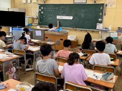 8月29日(火)1時間目、3年1組は算数で長い長さを表そうとしていました。mとcm両方を使って長さを表そうとしていました。
