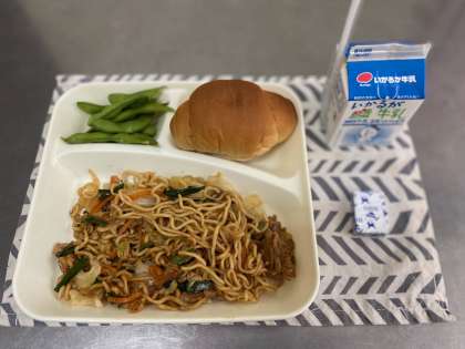 オイスターソースは「かき油」ともいい、貝の牡蠣を主な材料とした調味料です。独特の風味とコクがあり、中国料理によく使われます。今日の給食は、オイスターソースを使って味付けした焼きそばでした。