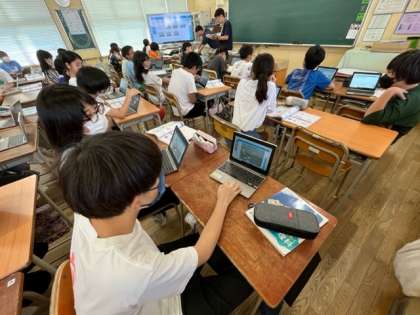 8月29日(火)5時間目、6年1組は理科でパワーポイントを使って「みんなで使う理科室」についてまとめていました。パソコンを使ってまとめていく様子に驚きました。