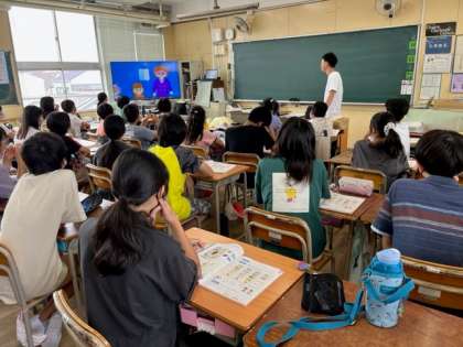 8月30日(水)1時間目、6年1組は外国語科で「夏休みのできごとをたずね合おう」を学習していました。