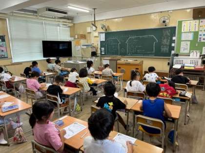 9月4日(月)1時間目、1年1組は生活科で家でしていることについて、書き出していました。