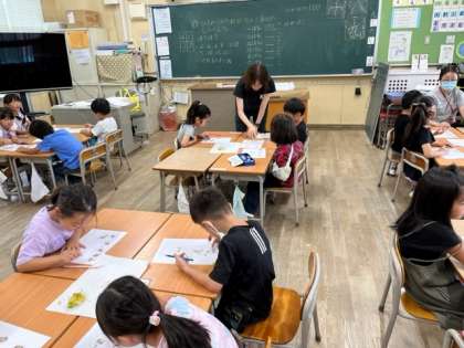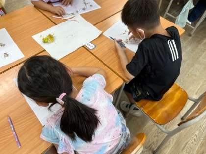 9月6日(水)1時間目、1年1組は生活科でひまわりの種を数えていました。班ごとに分担して数えていました。1班は10個のまとまりが15あったので150個ありました。他の班は何個あって、全部で何個になったでしょうか。算数の学習みたいでした。