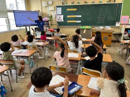 9月7日(木)1時間目、1年2組は算数で10に5をたした数や、18から8をひいた数を考えていました。