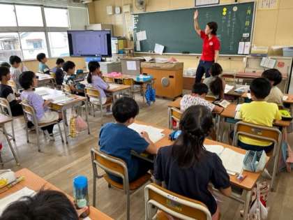 9月7日(木)1時間目、3年1組は国語で「紙ひこうき」という詩を学習していました。