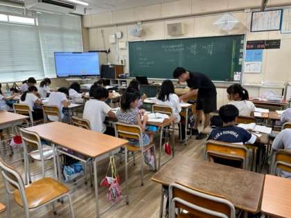 9月7日(木)1時間目、5年1組は算数で学級を2分割して少人数で学習をすすめていました。