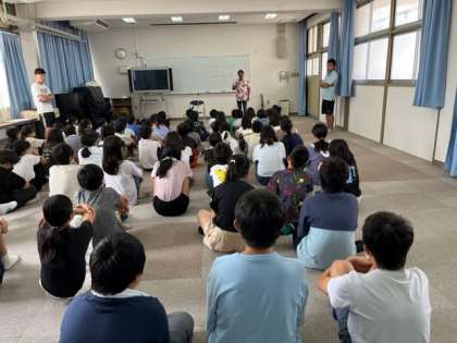 9月7日(木)2・3時間目、6年は学校近くの三線教室の先生をゲストティーチャーに招き、第二次世界大戦末期の沖縄戦についてお話を聞いていました。悲惨な状況のお話を聞いて泣いている子がいたと先生からうかがいました。