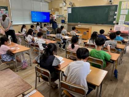 9月11日(月)3時間目、1年1組は国語で「あるけ あるけ」の詩を音読していました。