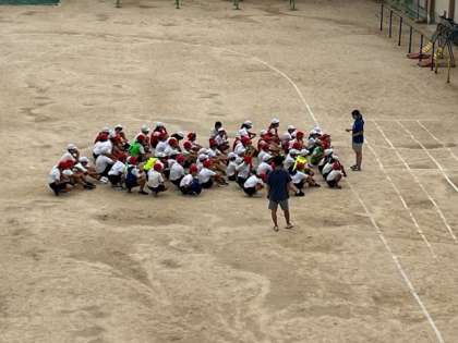 9月11日(月)5時間目、5年は体育でリレーのバトンパスについて学習していました。