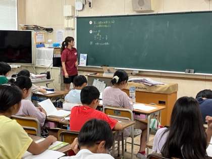 9月12日(火)1時間目、5年2組は算数で等しい分数の分母どうし、分子どうしの関係を調べていました。