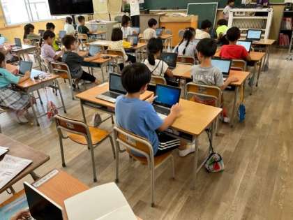 9月12日(火)4時間目、1年1組はパソコンのログイン等の練習をしていました。