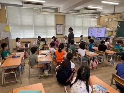 9月13日(水)1時間目、3年1組は外国語活動で「Do you like red?」に対して「Yes,I do.」「No,I don't.」で答える練習をしていました。先生がredだけでなく、色を変えて、子どもたちにどんどん聞いていきます。