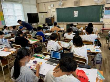 9月13日(水)3時間目、5年1組は図工で絵の続きをしていました。