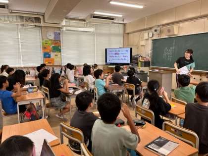 9月20日(水)のびっこタイムで4年1組はアルファベットの発音に合わせてアルファベットの形を両手で作っていました。楽しそうな感じが伝わってきました。