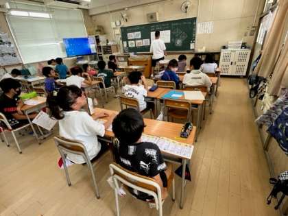 9月20日(水)2時間目、4年2組は国語で新出漢字の練習をしていました。