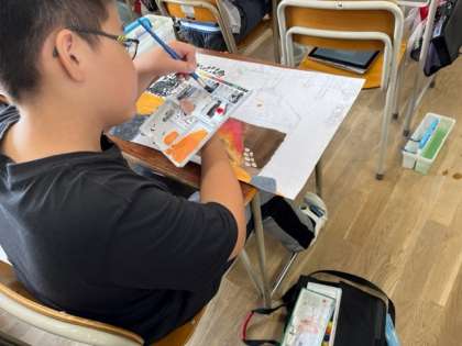 9月20日(水)3時間目、5年1組は図工で夏の思い出の絵を描いていました。