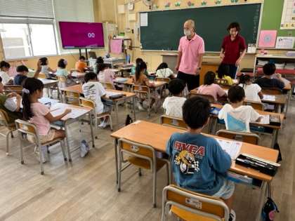 9月20日(水)3時間目、1年2組は国語で「ひらがなの まとめ」のプリントをしていました。