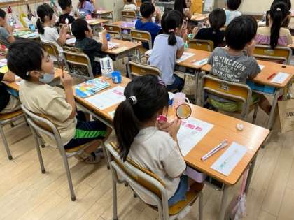 9月21日(木)2時間目、2年1組は歯みがき指導でした。第一大臼歯を鏡で探していました。